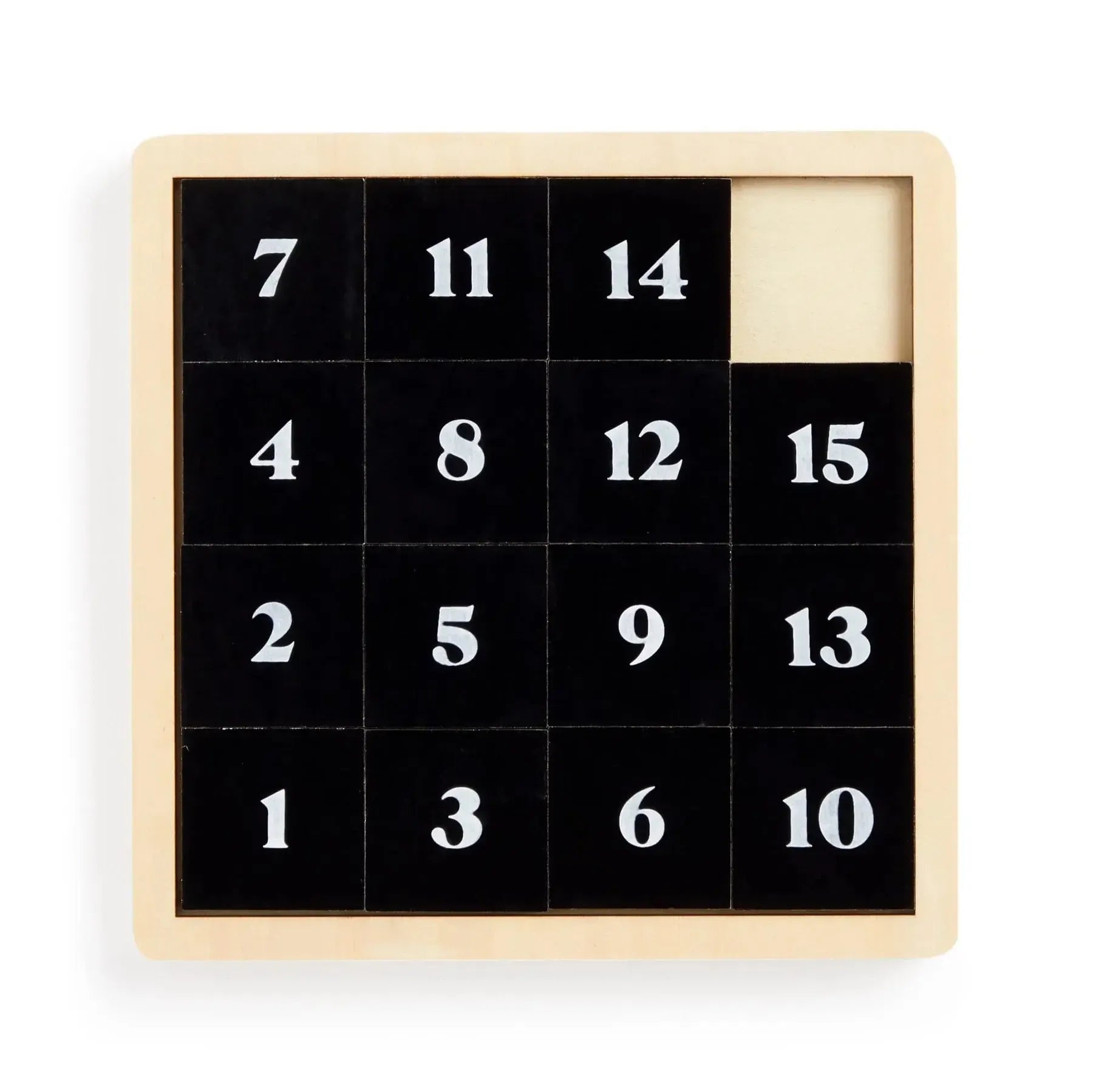 The Andy Warhol Flowers 2-in-1 Sliding Wood Puzzle includes both a puzzle and a game. Side 1 is a wood tile puzzle featuring Warhol’s iconic Flowers art. Side 2 is a numbers challenge known as “Game of Fifteen” where players slide the tiles (without lifting them off the surface) to match the multiple number sequence challenges provided on the instruction sheet. The tiles are only lifted up to move when the player is stuck and wants to revert to the starting configuration for a new challenge.