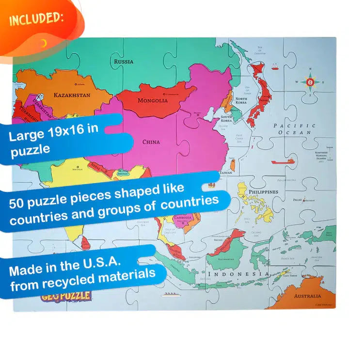 Asia GeoPuzzle 50 Piece Jigsaw Puzzle Geotoys