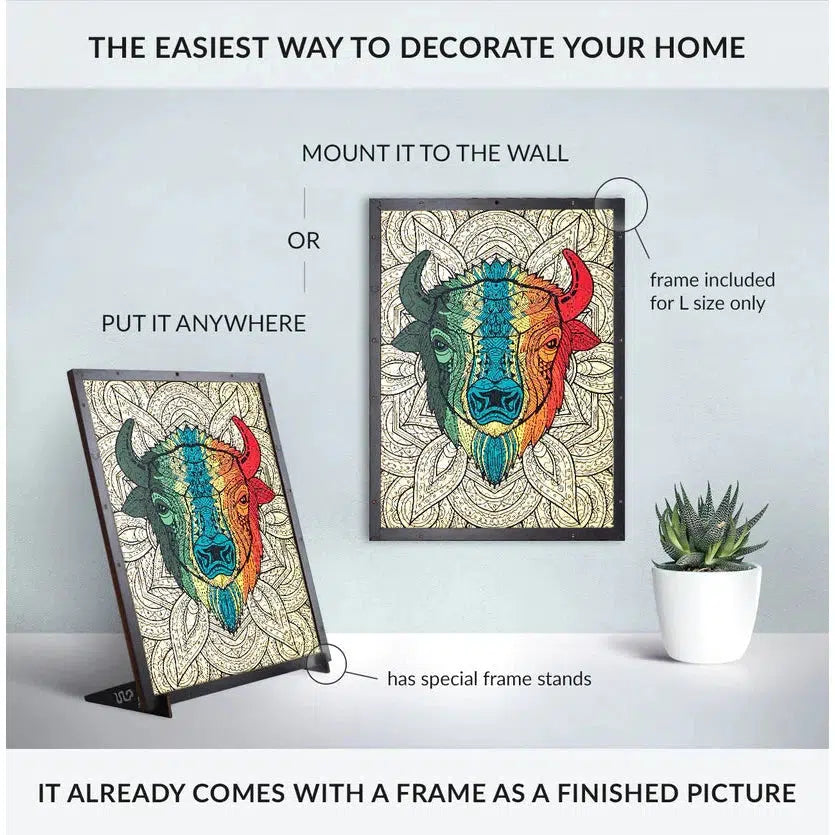 The Bison Shaped Jigsaw Piecezz Puzzle is a unique and challenging puzzle that is perfect for people of all ages. The puzzle consists of 250 irregular wooden pieces that are shaped like a bison.