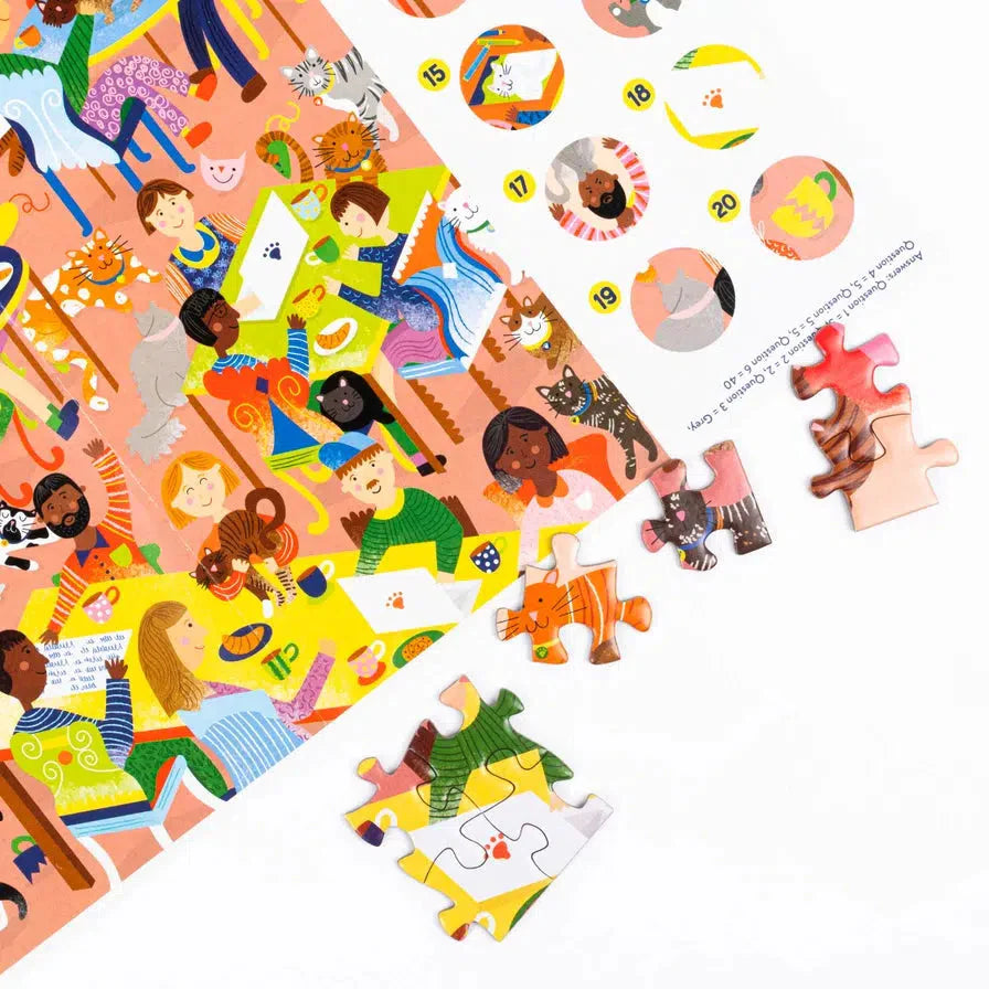 Cats or dogs? There’s no need to choose with this double-sided jigsaw puzzle! Relax as you enjoy piecing together the puzzle that celebrates both our favorite furry friends – playful pups in the dog park and cool cats in the Cattuccino café. Then have fun spotting all the little details that make up the bigger picture!