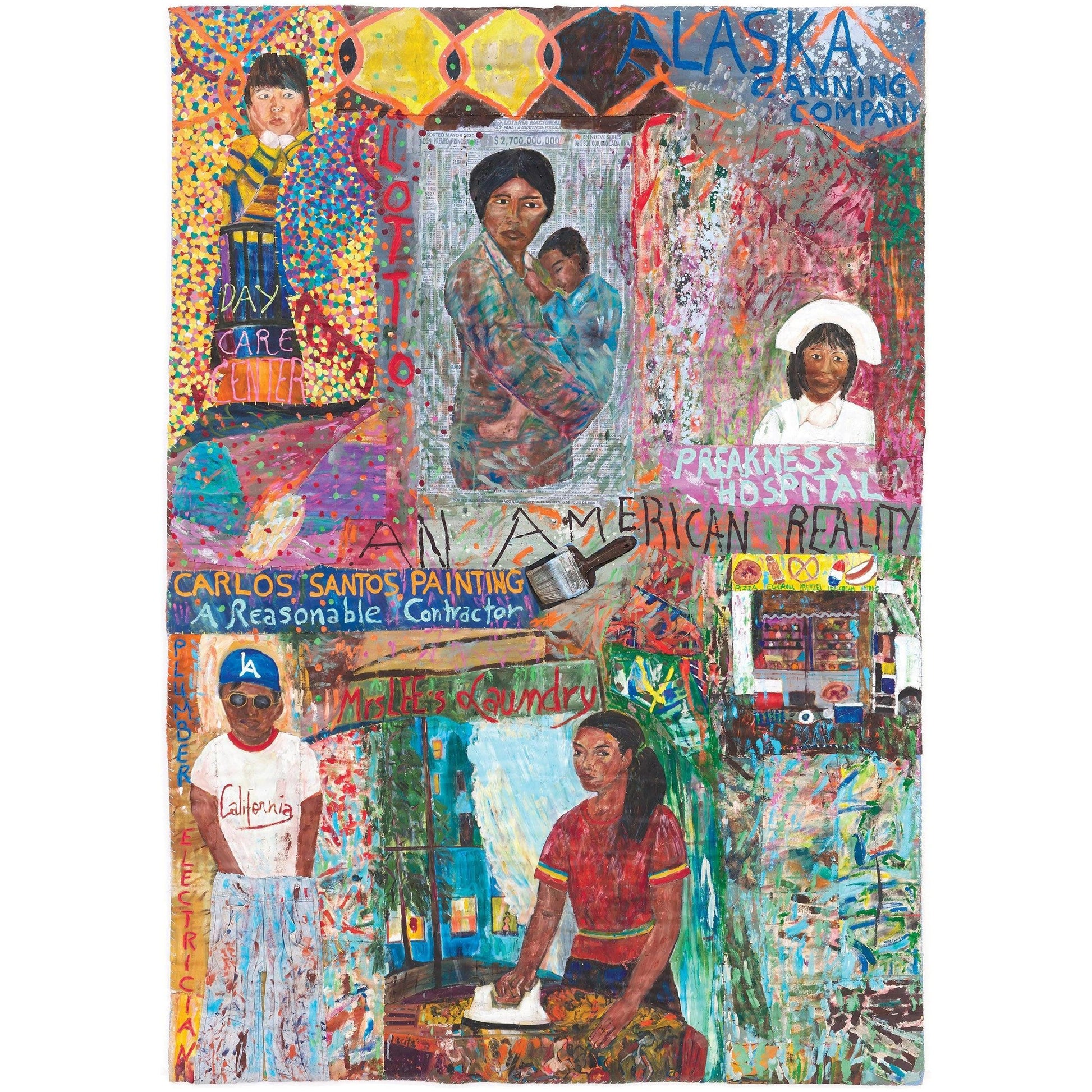 Perhaps more than any other artist featured in our growing collection, the work of Pacita Abad encapsulates the fighting spirit of US immigrant populations. Her empathic representation is striking for its thematic juxtaposition of universal, systemic struggle with triumphant hope and immutable vibrancy in the face of insurmountable odds. Born in the Philippines in 1946, Abad emigrated to the United States to study at the Corcoran School of Art in Washington, D.C where she developed her singular technique of trapunto painting -a hybridization of quilting and collage that rendered her canvases into three-dimensional landscapes that both support and interact with her uniquely abstract application of paint, bearing whole new worlds as naturally as life itself. Her subjects were primarily the unseen actors in the ecosystem of American economics that, despite barriers of language, education, and social capital, comprised the very fabric of a nation’s way of life. Following her death in 2004, Abad’s stature in the international arena of fine art continues to flourish. From Tate Modern in London, to the National Gallery of Singapore, the M+ Museum in Hong Kong, and the National Museum of Women in The Arts in Washington, D.C., Pacita Abad’s work is proudly displayed in esteemed collections around the globe.