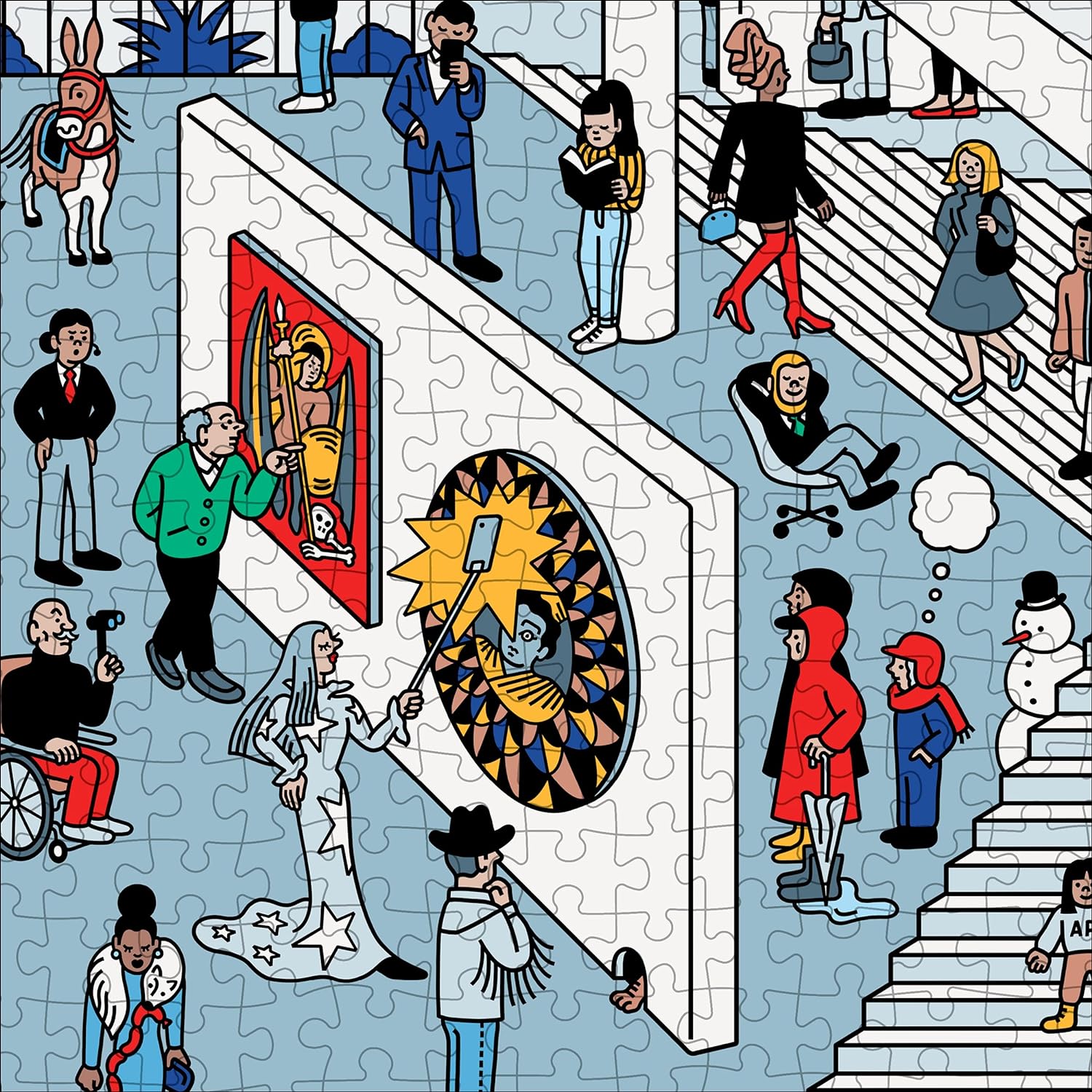 - FUN-FILLED ART HISTORY AND POP CULTURE REFERENCES: The illustrated museum scene is teeming with miniature stories familiar to anyone who has ever stepped inside a museum. Discover hidden secrets scattered throughout the puzzle as you piece it together!