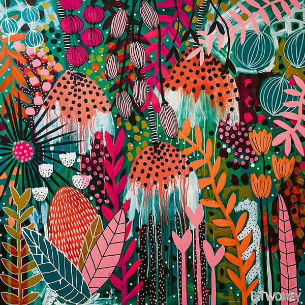 The Australian artist Bernadette Twomey manages to put herself in an almost trance-like state when she paints: “As I fill the canvas with color, new shapes and species of plants emerge.” Her large-scale and striking artworks, inspired by moods, emotions and seasons, celebrate Australian life.