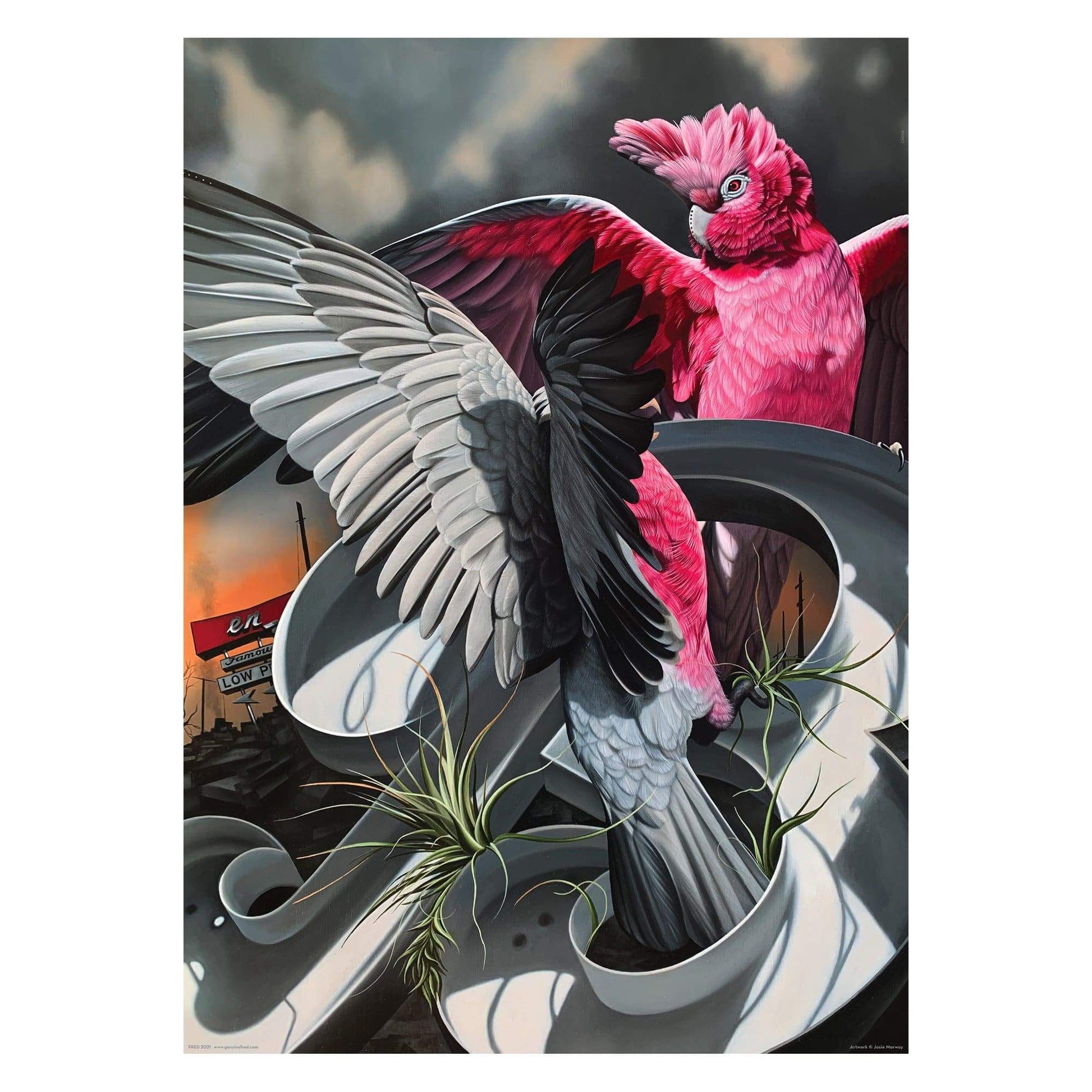 Morway’s extremely detailed style of oil and enamel painting on wood panels combines the influence of Dutch Masters’ techniques, religious icon paintings, and hyper-modern color and design elements. The wildlife in Morway’s work is portrayed with an intense reverence that escalates to surreality, creating paintings that are both politically charged and ethereally poetic. Morway’s work explores the sanctity of wildlife and wilderness in the face of human degradation and seeks to challenge the assumptions and projections we bring to our interactions with the wild.