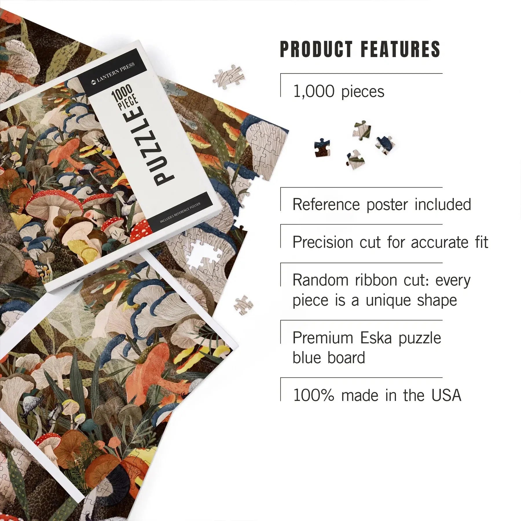 Woodland Mushrooms 1000 Piece Jigsaw Puzzle Lantern Press